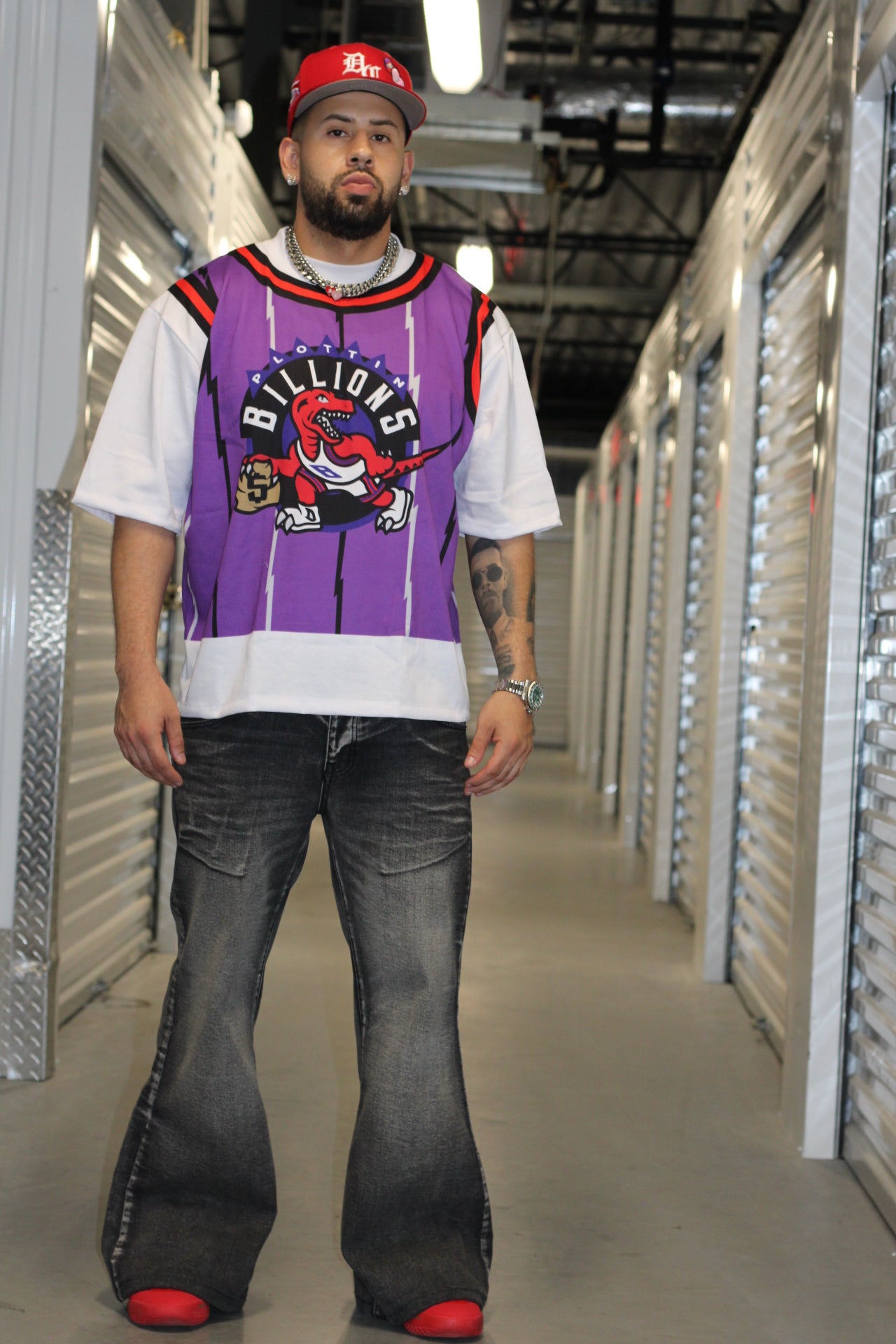 White boxy fit 100% polyester shirt true to size, size down for crop fit. With sublimation Raptors purple jersey black and silver pin stripes with 7 on back, for seven years in the game.